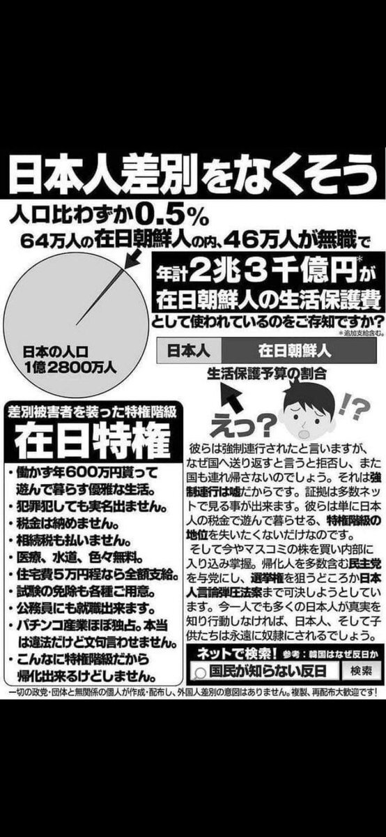 返信先:@pA0292Yruk32311在日朝鮮人 「働かず年600万もらって優雅な生活。家賃5万円迄なら全額支給。 税金、相続税払わない 水道代タダ…」x.com/uaOj8bWfiQVHto…